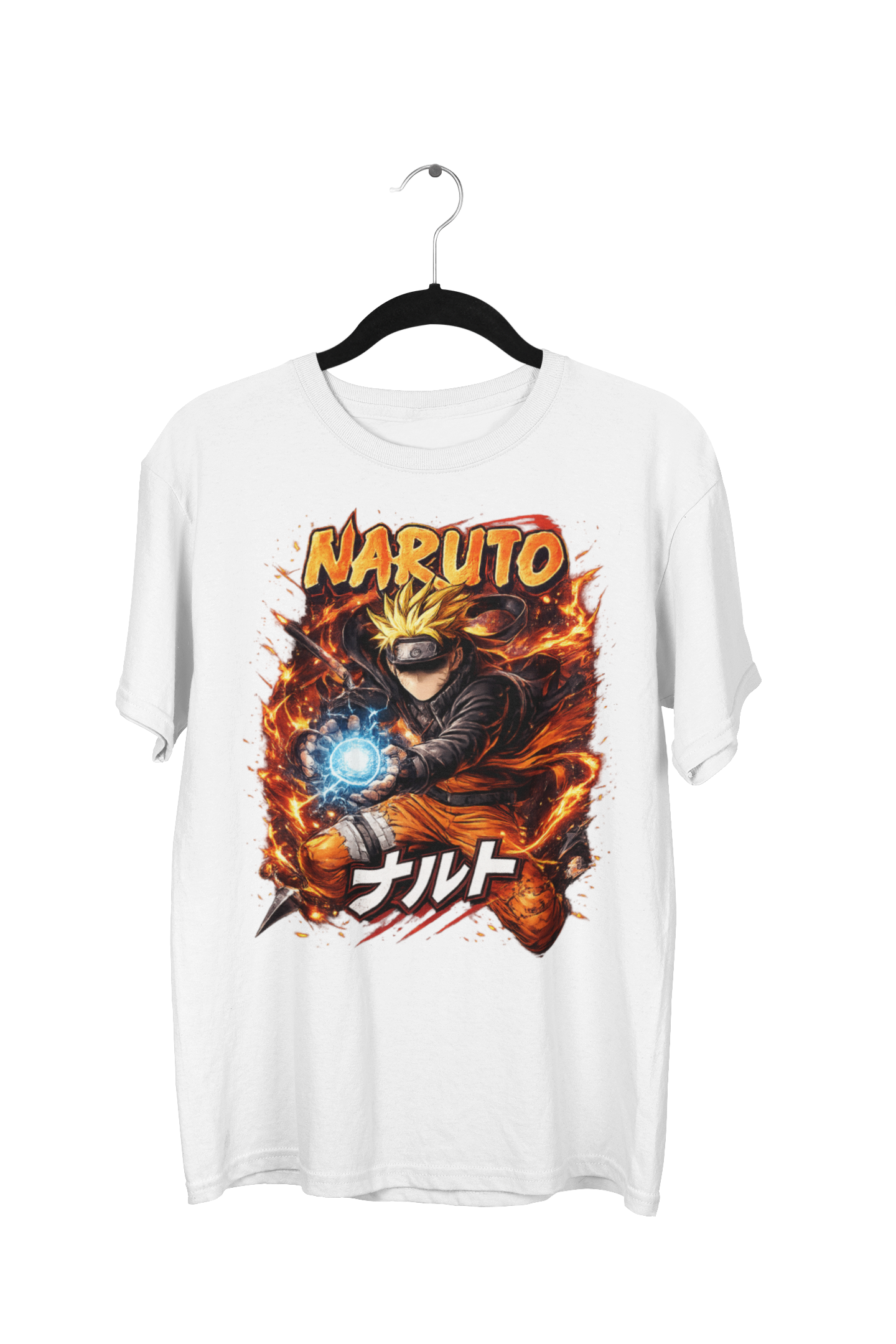 Unleash your inner ninja in maximum comfort. This high-intensity oversized tee features Naruto Uzumaki harnessing the power of the Rasengan amidst a whirlwind of flames. Combining iconic anime artistry with a modern, boxy streetwear cut, this piece is a tribute to the “Will of Fire” for those who want a bold look with a relaxed silhouette.