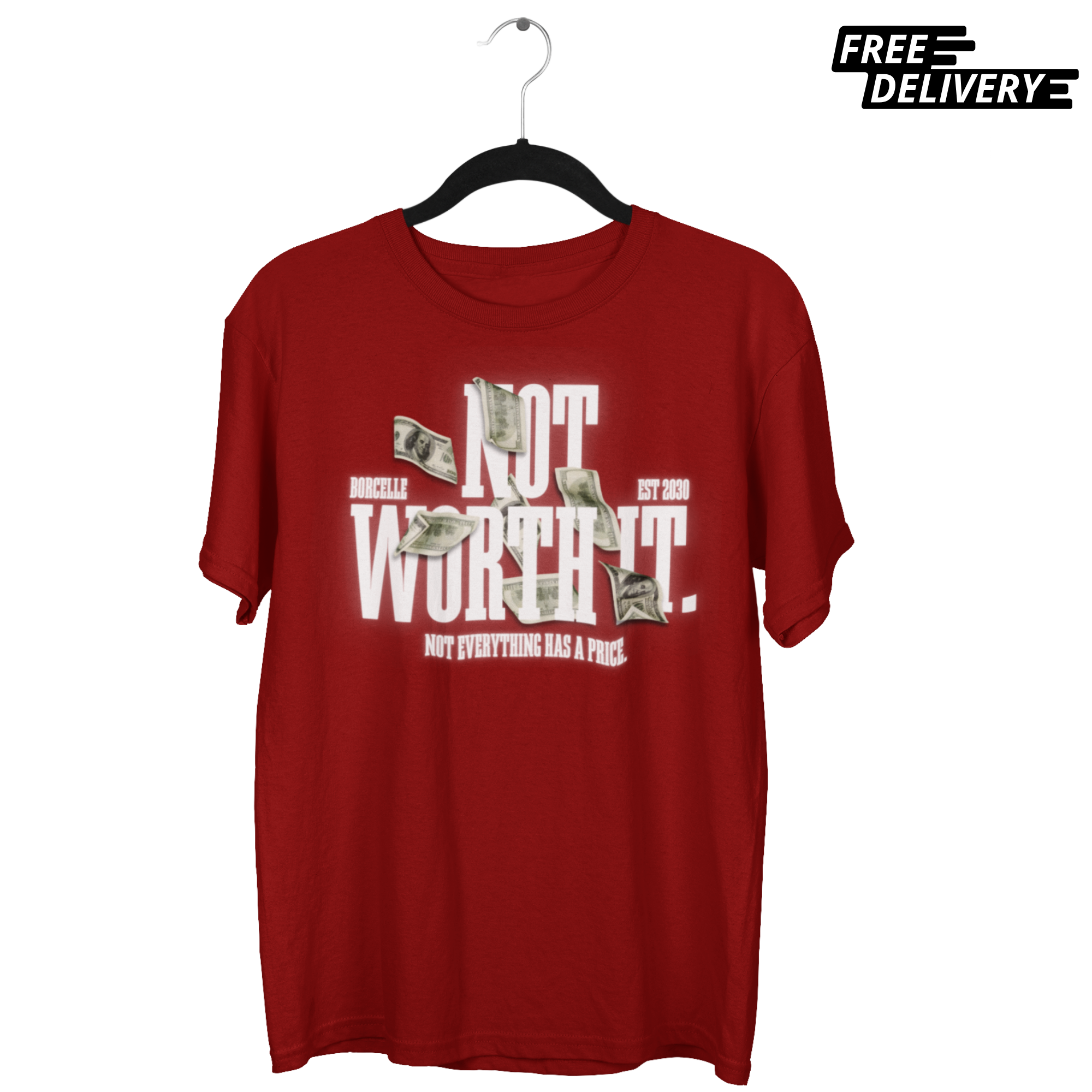 Make a statement that counts. This bold, high-contrast oversized tee features striking white typography set against a flurry of falling cash. With the powerful message “Not everything has a price,” this piece is designed for those who prioritize integrity over the hustle. The relaxed, boxy silhouette provides the ultimate modern streetwear fit.