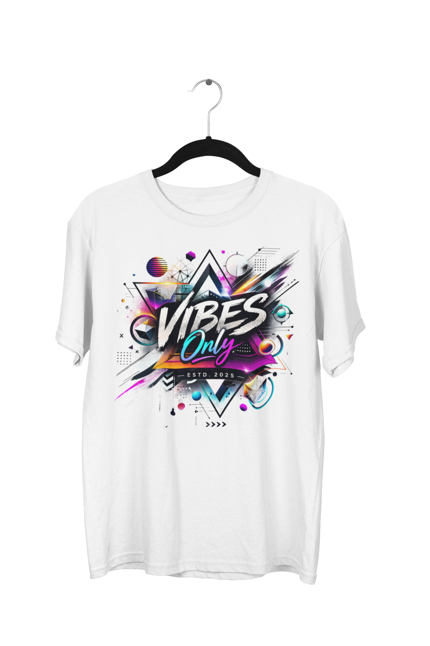Transform your energy into style. This oversized tee is for those who live life in full color and high vibration. Featuring sharp geometric shapes, neon gradients, and a dynamic “Vibes Only” mantra, this design represents the peak of 2025 modern aesthetics. The relaxed, boxy silhouette provides an effortless urban look that is both on-trend and incredibly comfortable.