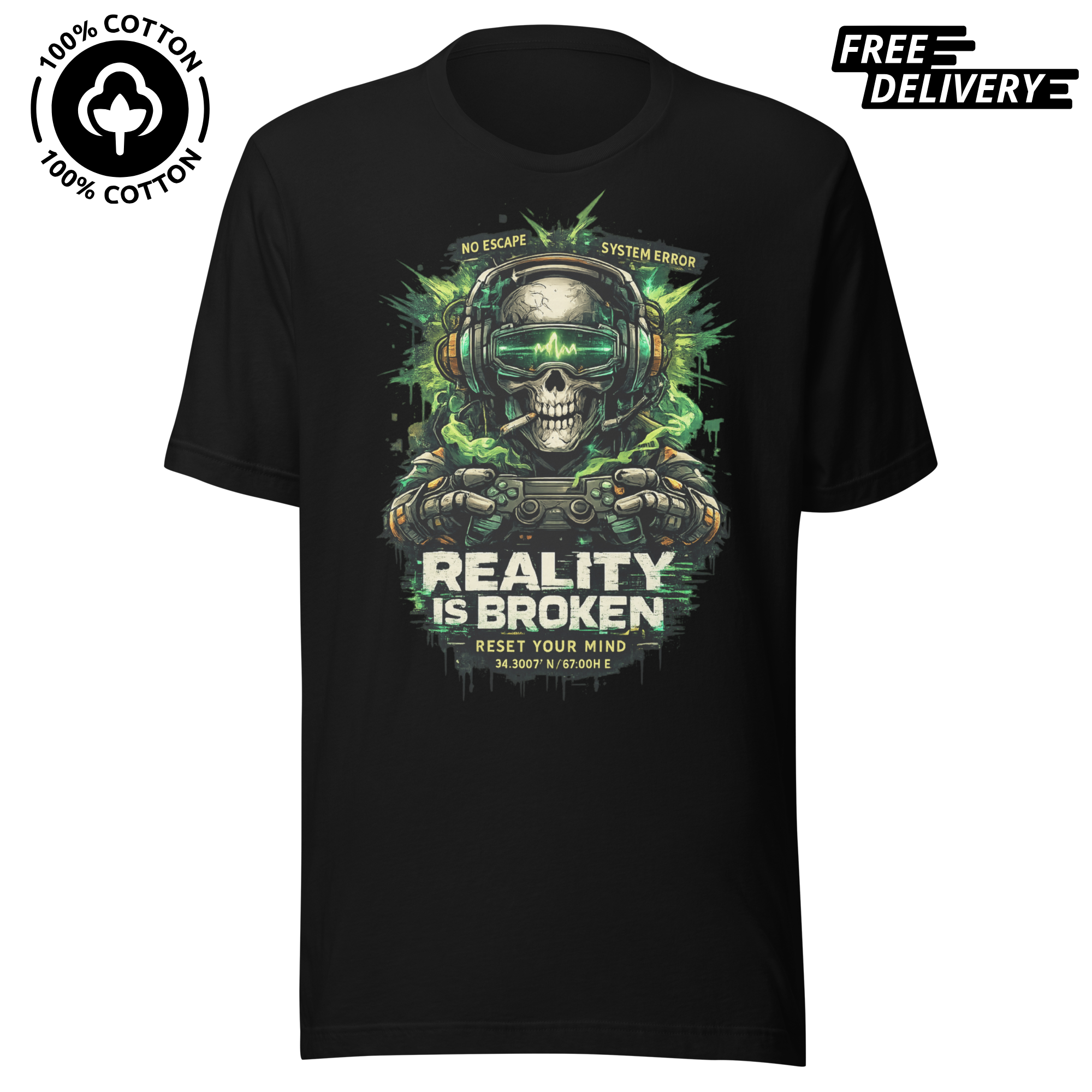 Escape the simulation. This edgy, neon-green design features a skeletal pilot trapped in a digital glitch, complete with “System Error” and “Reset Your Mind” messaging. It’s the ultimate statement piece for gamers who live in the high-stakes world of cyberpunk aesthetics.